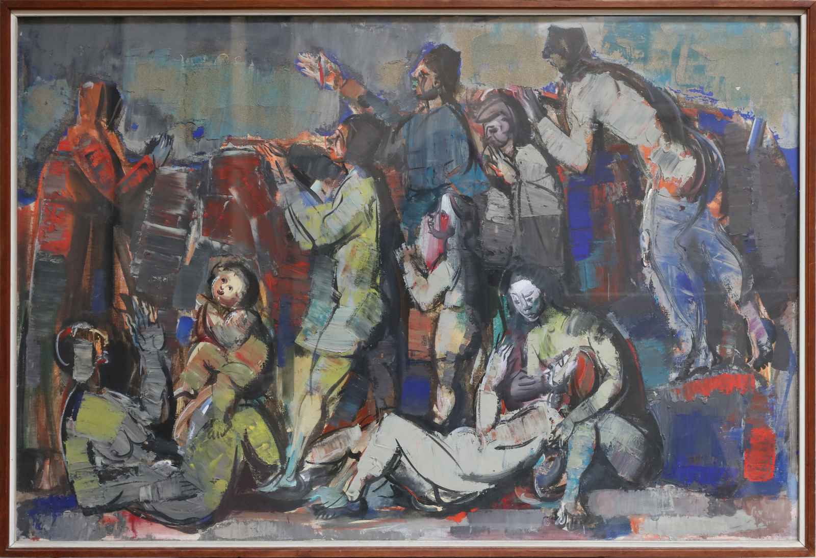 DI PRATA OSCAR (1910 - 2006) The barricade. Mixed media on canvas. Cm 90,00 x 60,00. Small defects.. Cornice presente