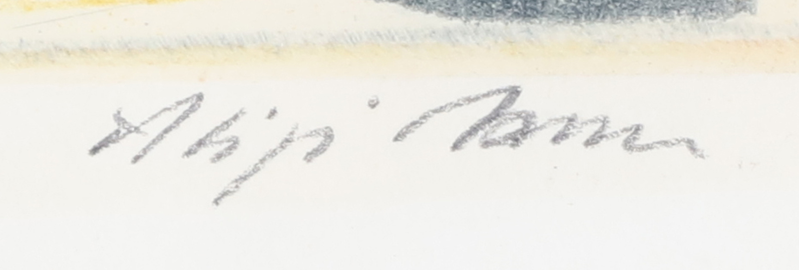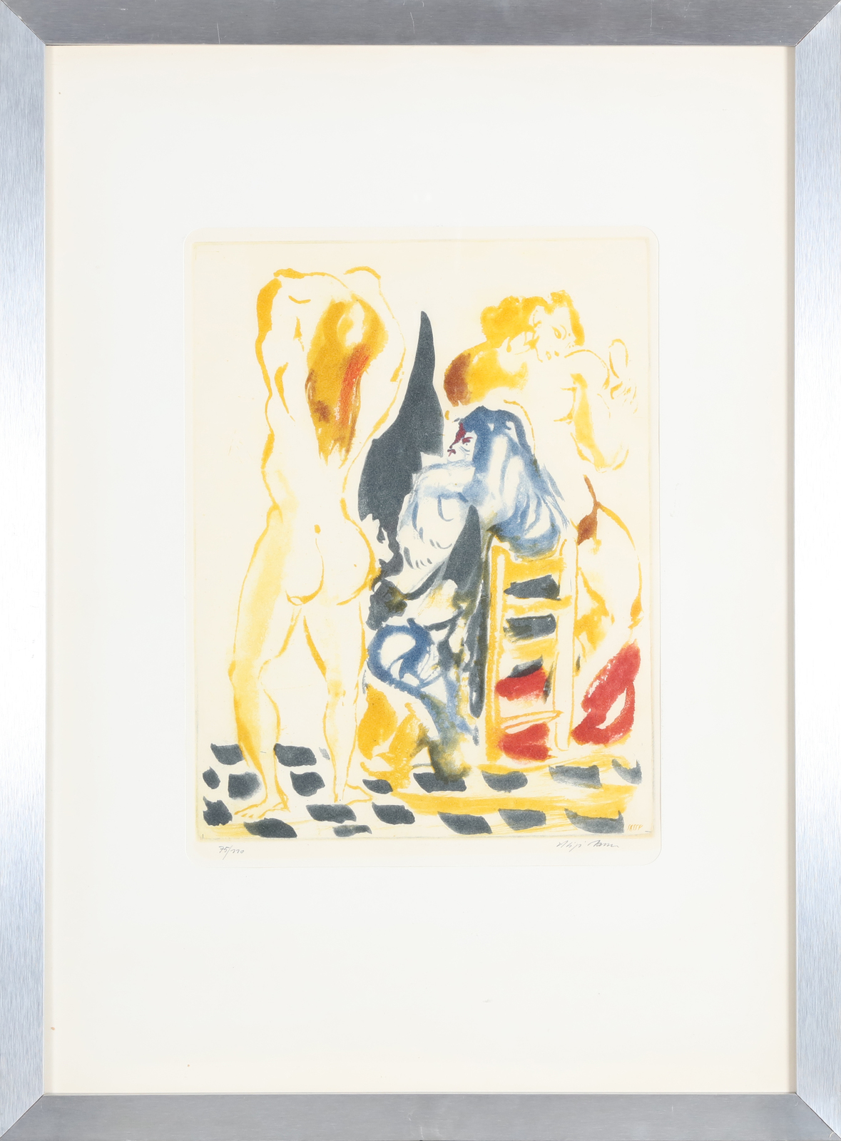 SASSU ALIGI (1912 - 2000) Untitled. Etching in colours. Cm 42,00 x 58,00. 75/110. Edition and signature lower in pencil. Signature lower right in plate. Plate size: 32.5x24.5 cm. Cornice presente