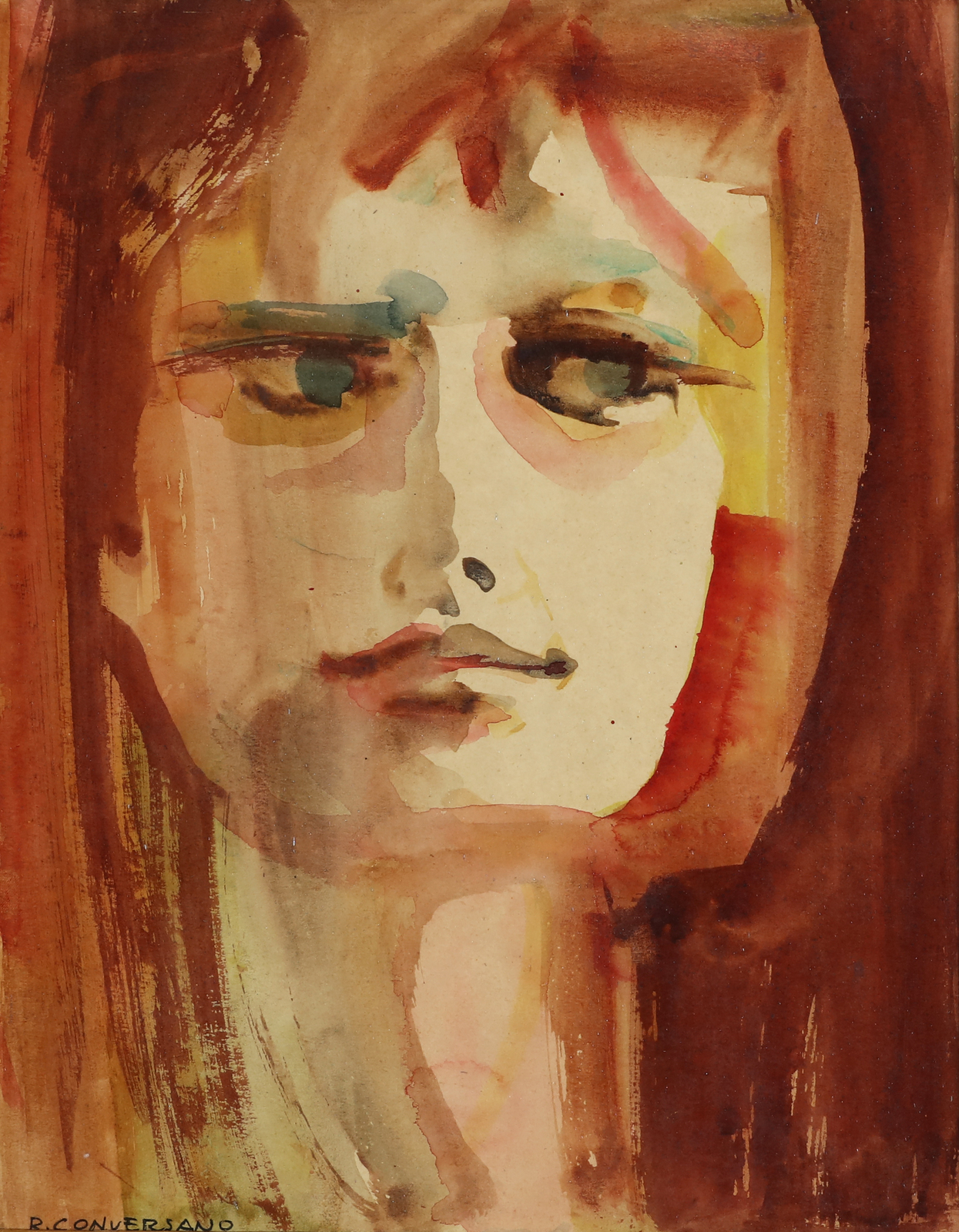 CONVERSANO ROMANO (1920 - 2010) Senza titolo. Tecnica mista su cartone. Cm 28,00 x 36,00. Firma in basso a sinistra. Cornice presente