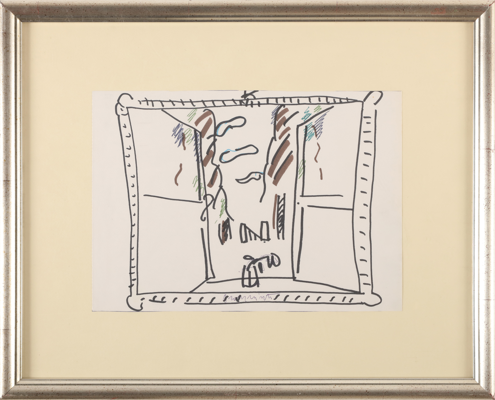 GIANQUINTO ALBERTO (1929 - 2003) The window. Mixed media on paper. Cm 32,00 x 22,60. Signature lower centre. Flaviostocco Gallery, Catelfranco V.to authenticity certificate. Cornice presente