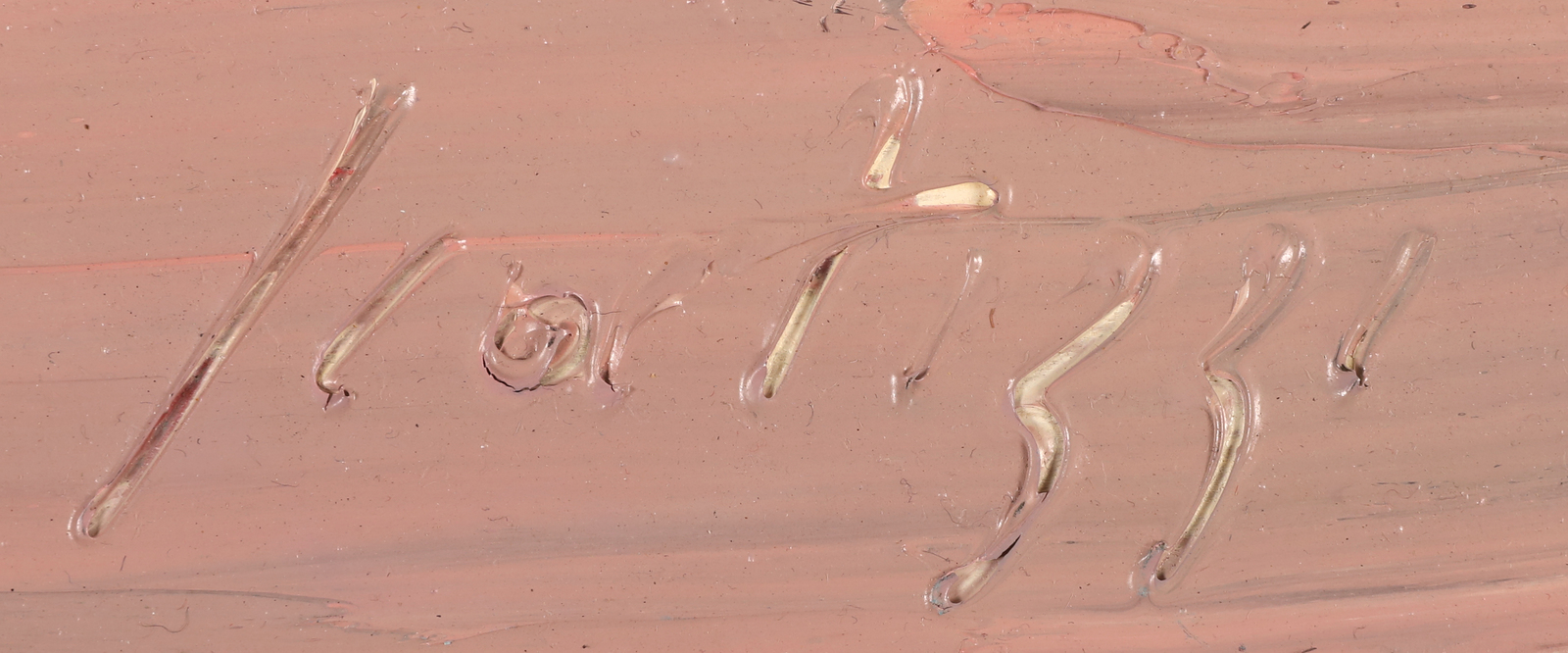 SCATIZZI SERGIO (1918 - 2009) Senza titolo. Olio su tavola. Cm 28,00 x 18,00. Firma in basso al centro. Cornice presente