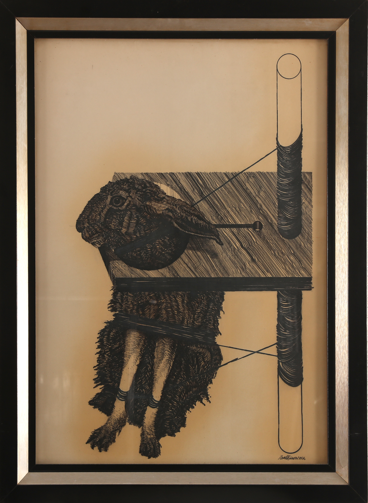 TRUBBIANI VALERIANO (n. 1937) Senza titolo. 1974. Disegno su carta. Cm 50,00 x 70,00. Firma e anno in basso a destra. Cornice presente