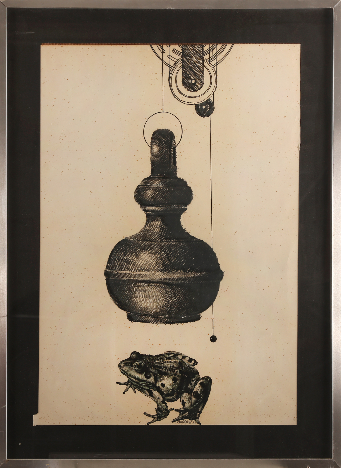 TRUBBIANI VALERIANO (n. 1937) Senza titolo. 1973. Disegno su carta. Cm 50,00 x 70,00. Firma e anno in basso al centro. Cornice presente