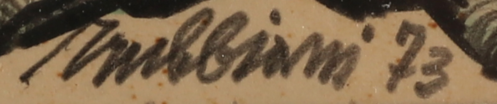 TRUBBIANI VALERIANO (n. 1937) Untitled. 1973. Drawing on paper. Cm 50,00 x 70,00. Signature and year lower centre. Cornice presente