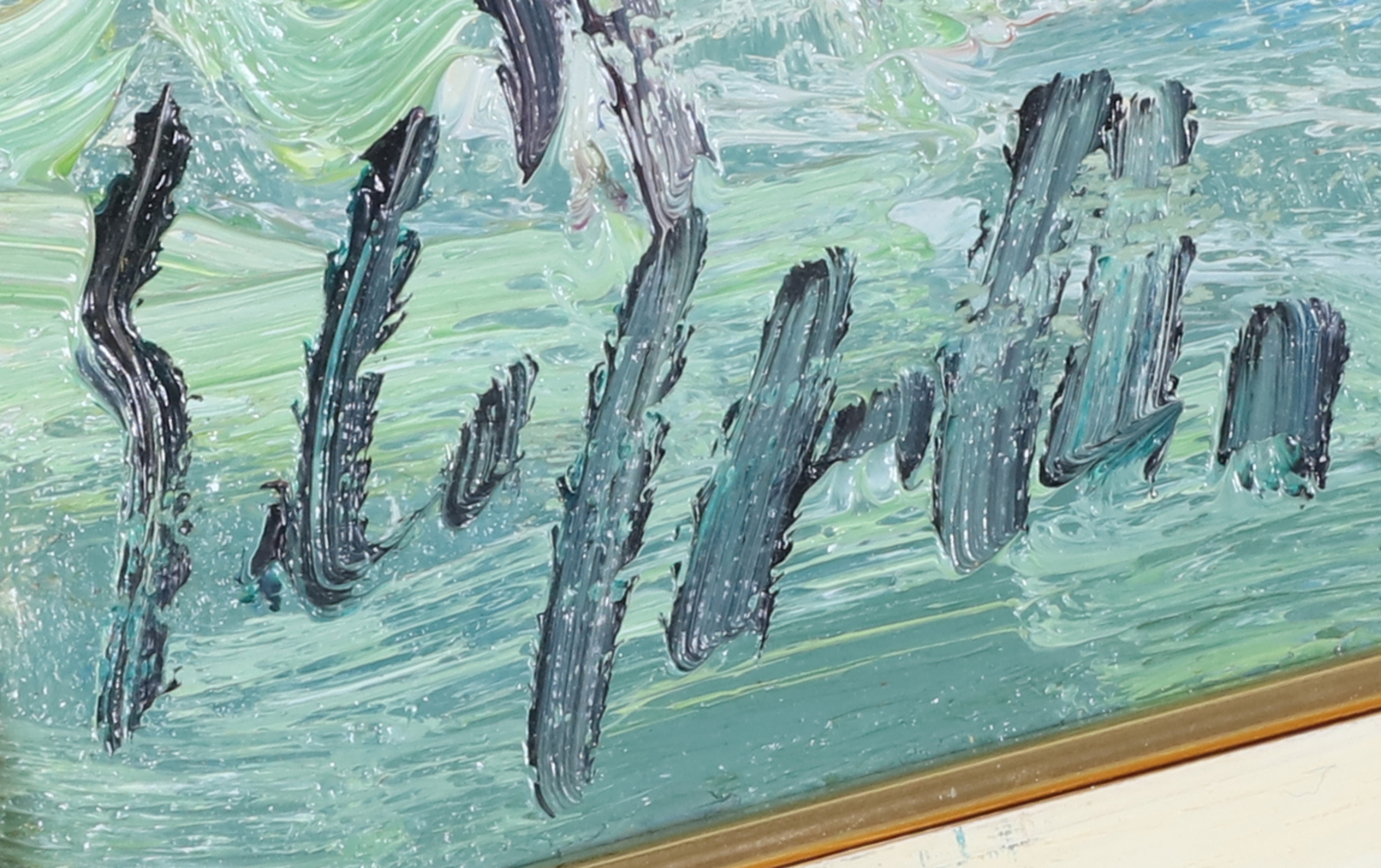 CAPPELLO EMANUELE (n. 1936) Parigi. Olio su tela . Cm 70,00 x 50,00. Firma in basso a sinistra. Al retro titolo e firma. Cornice presente