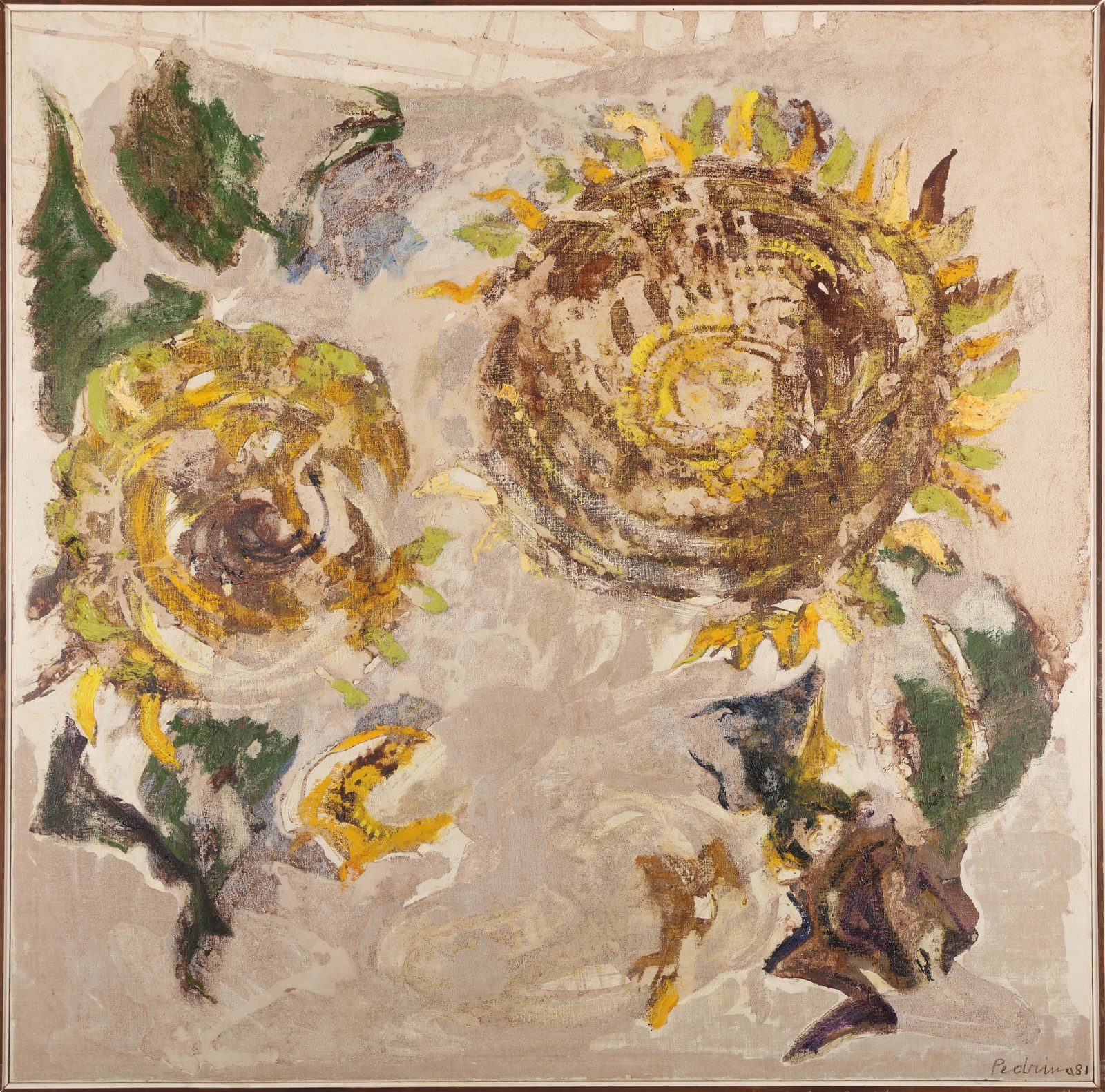 PEDRINA FRANCO (n. 1934) Senza titolo. 1981. Tecnica mista su tela. Cm 100,00 x 100,00. Firma e anno in basso a destra. Cornice presente