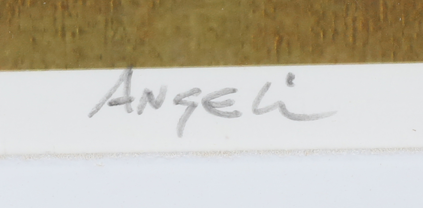 ANGELI FRANCO (1935 - 1988) Senza titolo. Litografia. Cm 70,00 x 50,00. 38/100. Tiratura e firma a matita in basso. Certificato di autenticità Telemarket, Roncadelle (Bs). Cornice presente