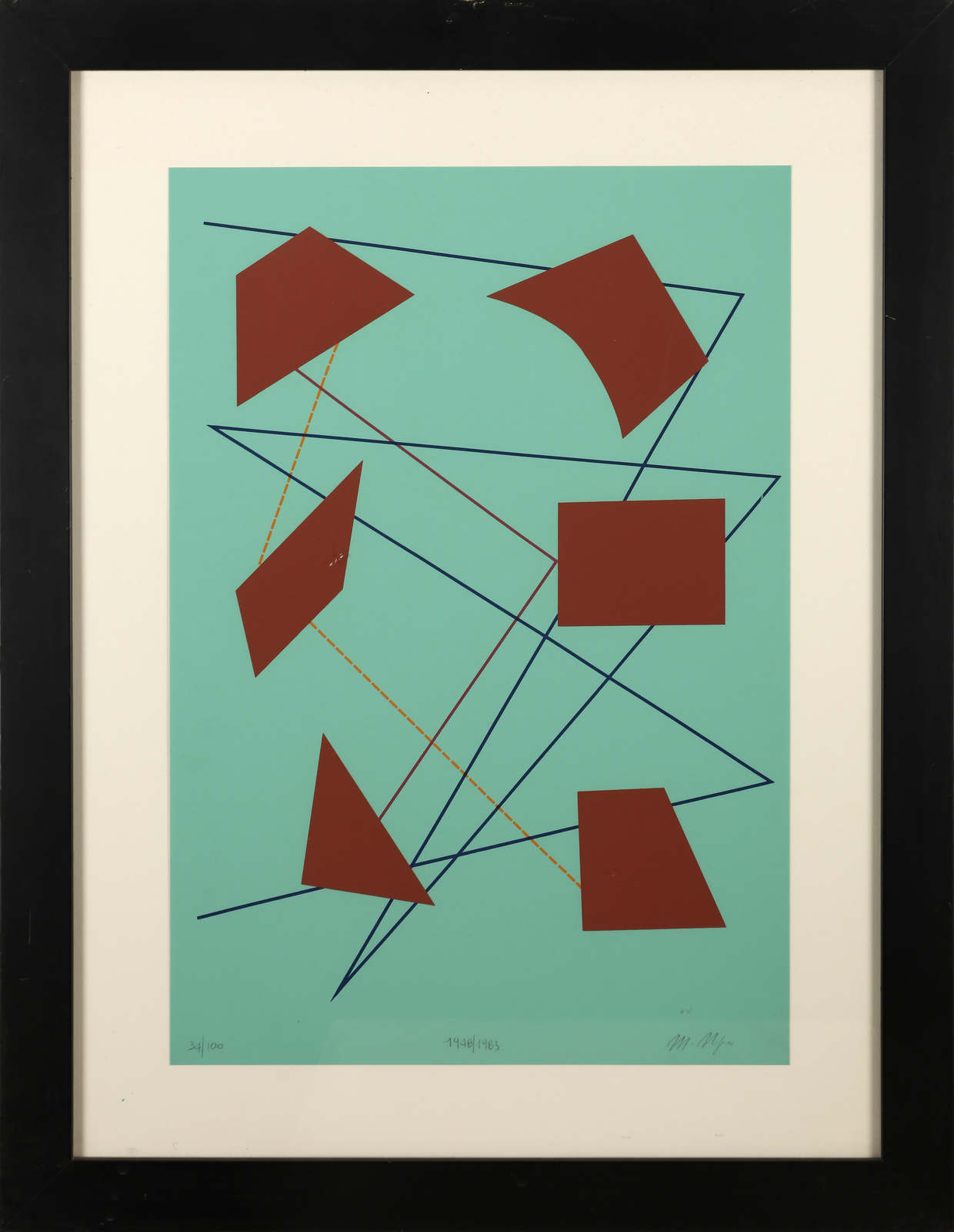 NIGRO MARIO (1917 - 1992) Senza titolo. Litografia. Cm 33,00 x 48,00. 34/100. Tiratura, firma e anno a matita in basso.1948 - 1983. Cornice presente