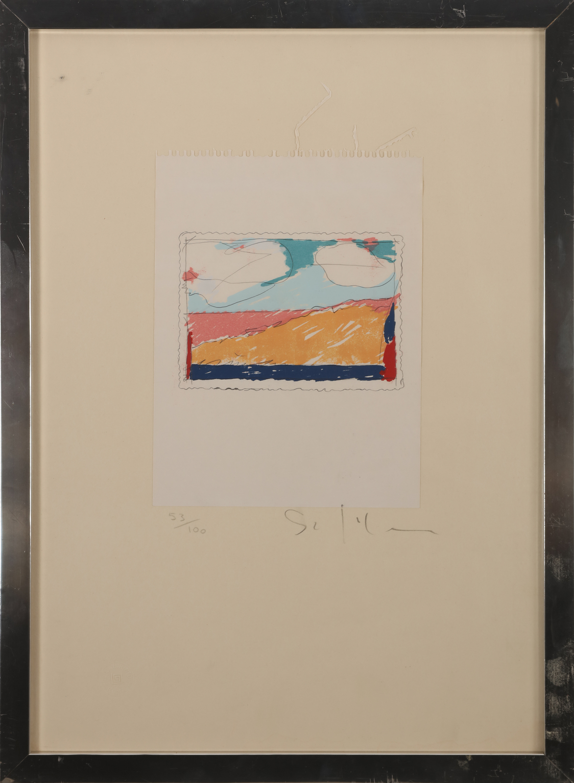 SCHIFANO MARIO (1934 - 1998) Untitled. Lithograph retouched by hand. Cm 35,00 x 50,00. 53/100. Edition and signature lower in pencil. Il Labirinto, Rome stamp lower left. Plate size: 24 x 18 cm.. Cornice presente