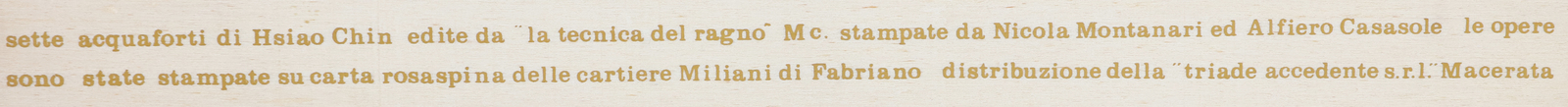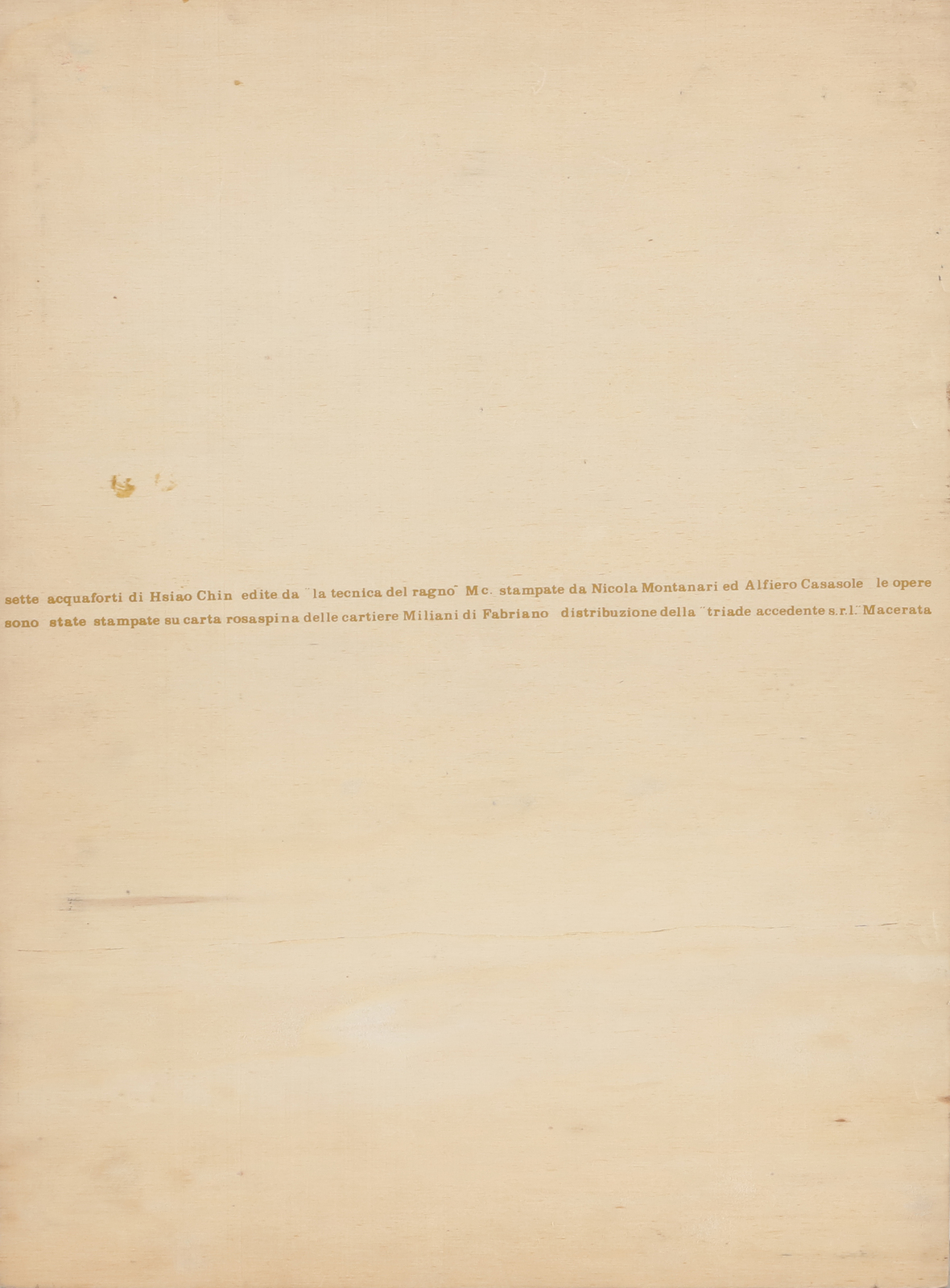 CHIN HSIAO (n. 1935) Folder compsed n. sheets. Ch'an di Hsiao. . 1978. Etching. Cm 28,50 x 38,50 x 4,00. 10/30. Edition, signature and year lower right in pencil. La tecnica del ragno stamp. Original pack.