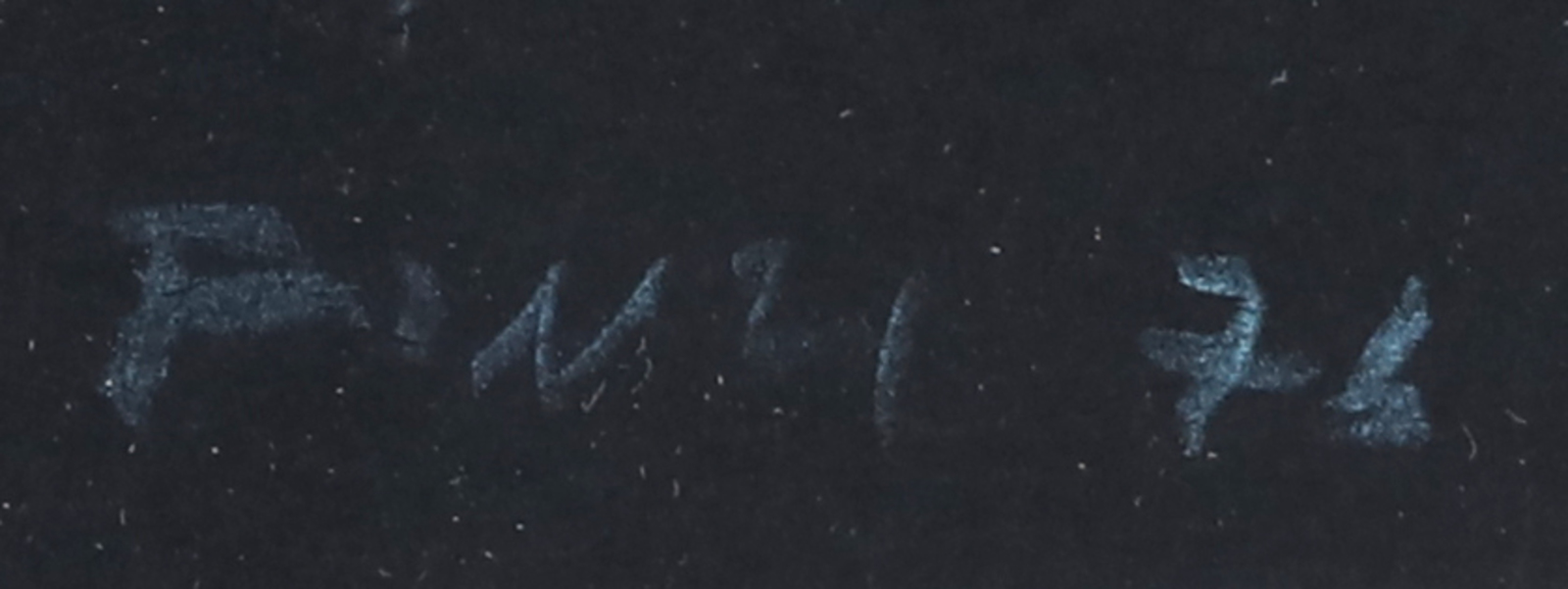 FINZI ENNIO (n. 1931) Untitled. 1976. Pastel on card . Cm 33,00 x 17,50. Signature and year lower right. Artist's authenticity certificate on photo. Cornice presente