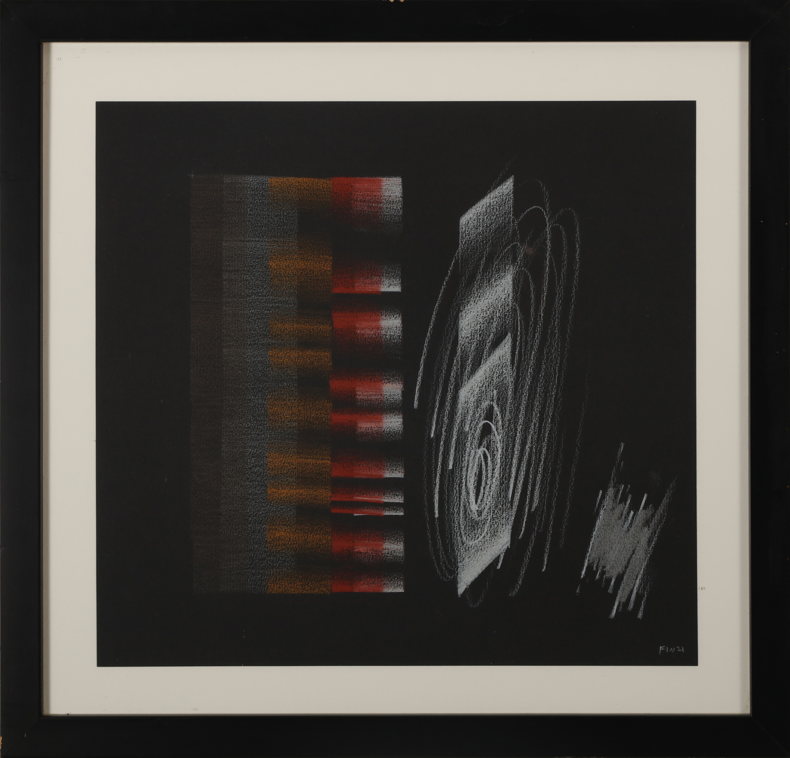 FINZI ENNIO (n. 1931) Senza titolo. Pastelli su cartoncino. Cm 36,00 x 34,00. Firma in basso a destra. Opera archiviata presso l'Archivio Ennio Finzi, Venezia come da documentazione fotografica allegata all'opera riportante il relativo numero d'inventario. Anni 2000. . Cornice presente