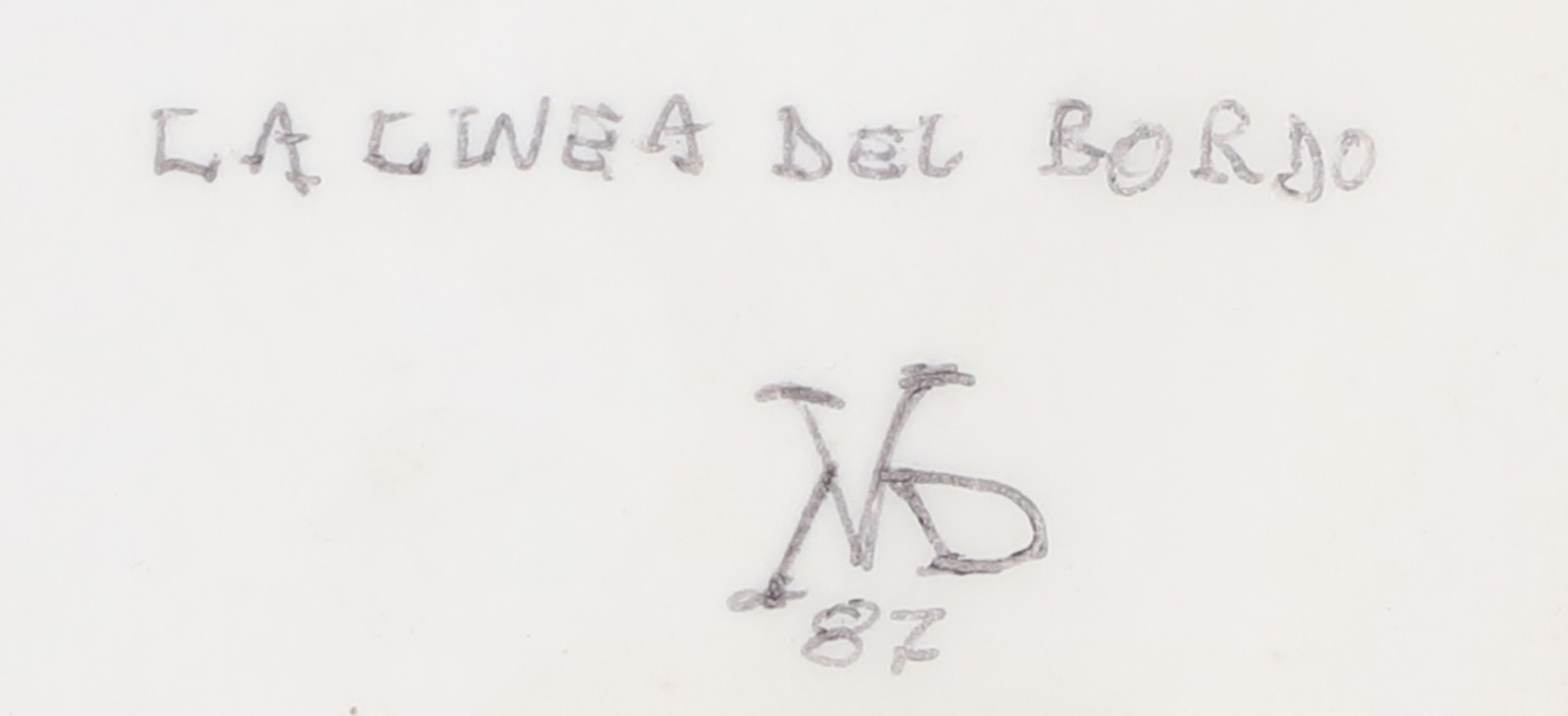 DELLA VEDOVA MARIO (n. 1958) La linea del bordo. 1987. Tecnica mista su carta. Cm 20,50 x 28,50. Titolo, firma e anno in basso a destra. Autentica dell'artista su fotografia. . Cornice presente