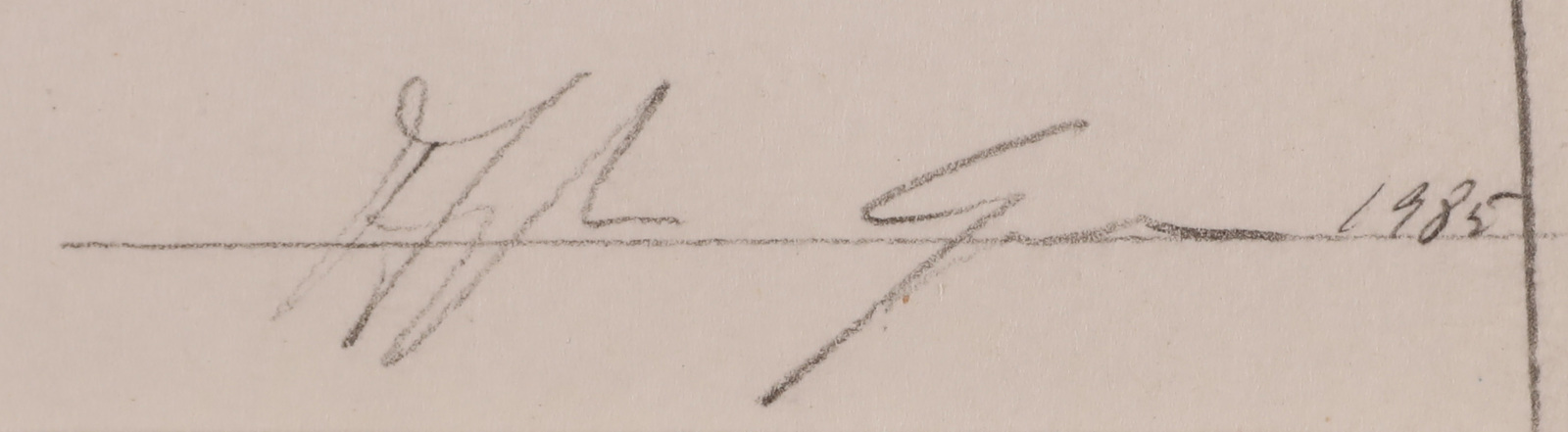 CAGNONE ANGELO (n. 1941) Senza titolo. 1985. Tecnica mista su carta. Cm 13,50 x 17,00. Firma e anno a matita in basso a destra. . Cornice presente