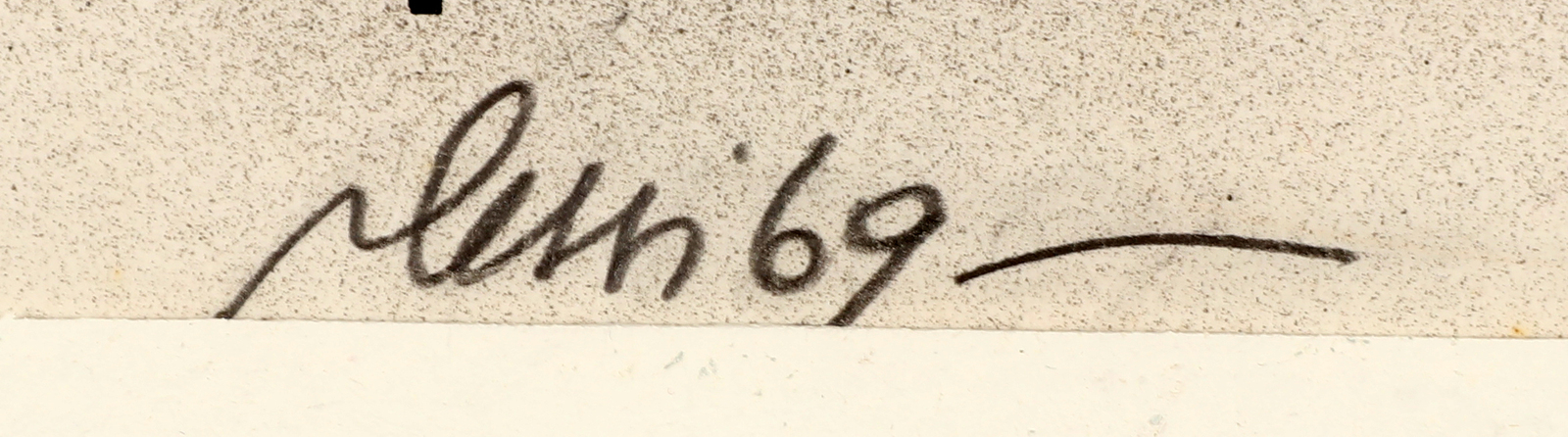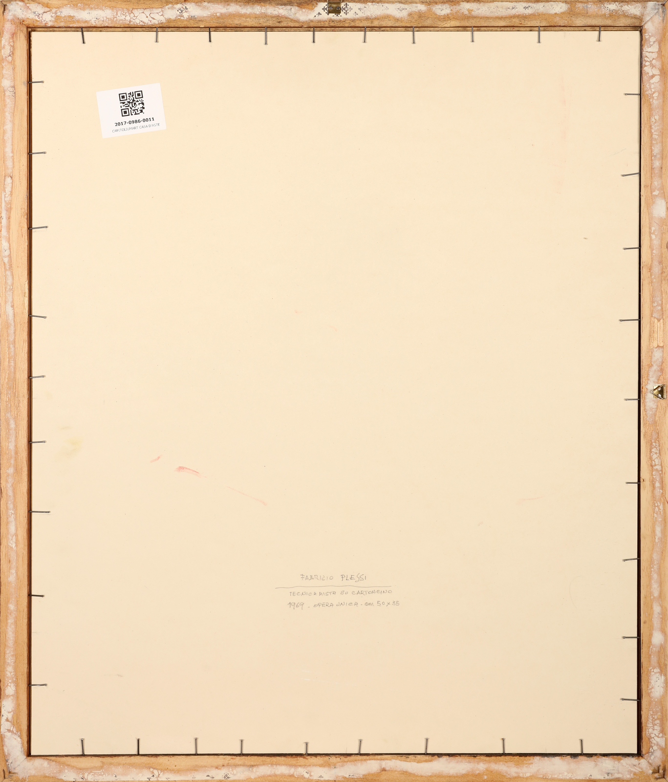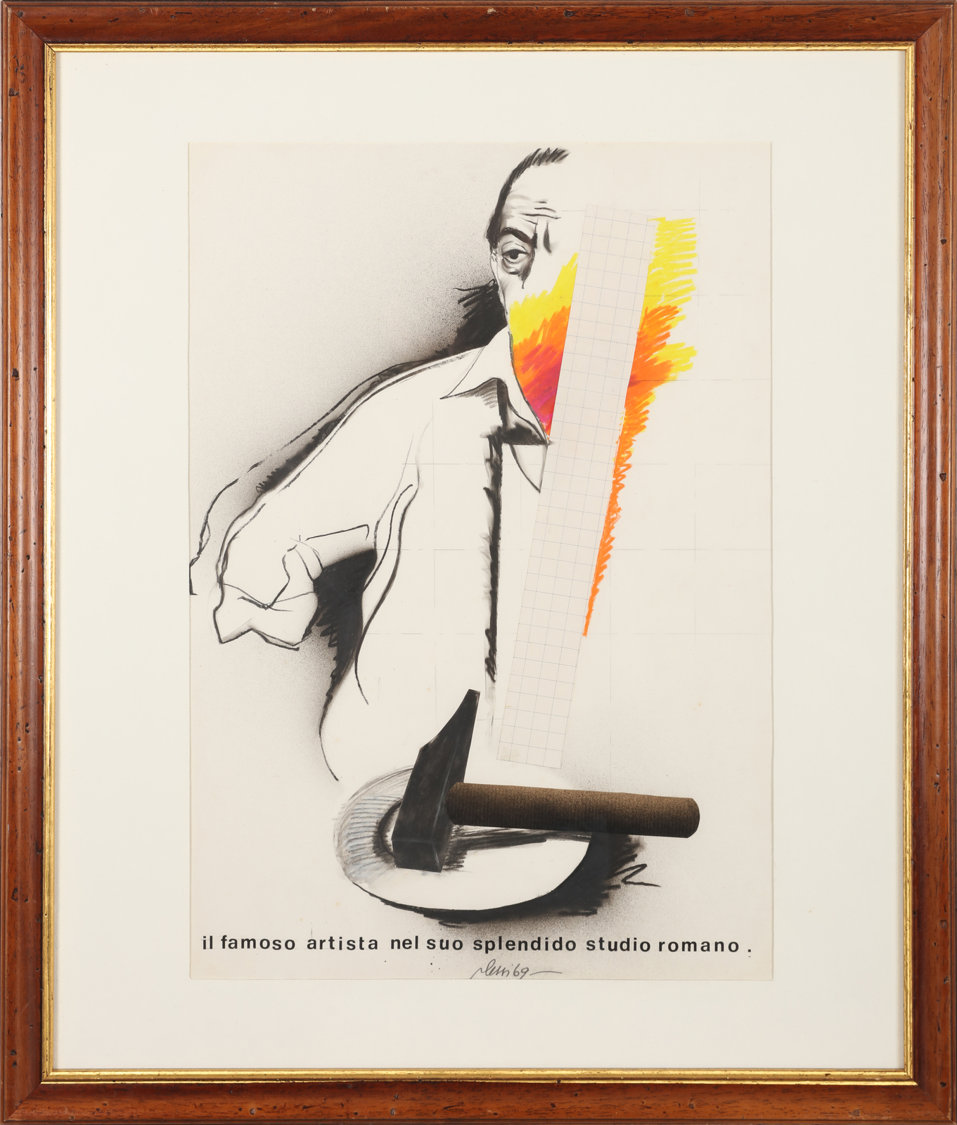 PLESSI FABRIZIO (n. 1940) Il famoso artista nel suo splendido studio romano. . 1969. Tecnica mista su cartoncino. Cm 35,00 x 50,00. Titolo, firma e anno in basso al centro. Cornice presente