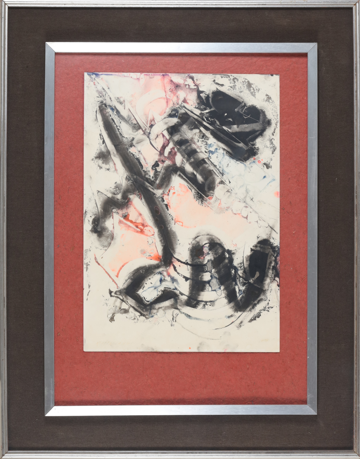 MASTROIANNI UMBERTO (1910 - 1998) Composizione. Acquarello su carta. Cm 35,00 x 50,00. Firma in basso a sinistra. Autentica su fotografia Galleria Sant'Agostino, Torino. . Cornice presente