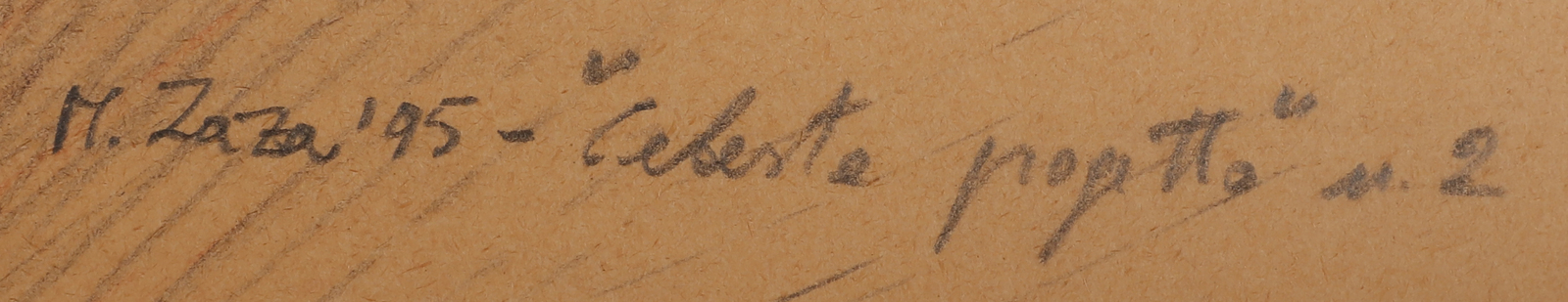 ZAZA MICHELE (n. 1948) Celeste progetto n.2. 1995. Tecnica mista su cartone. Cm 71,00 x 103,00. Titolo, firma e anno a matita in basso a destra. Cornice presente