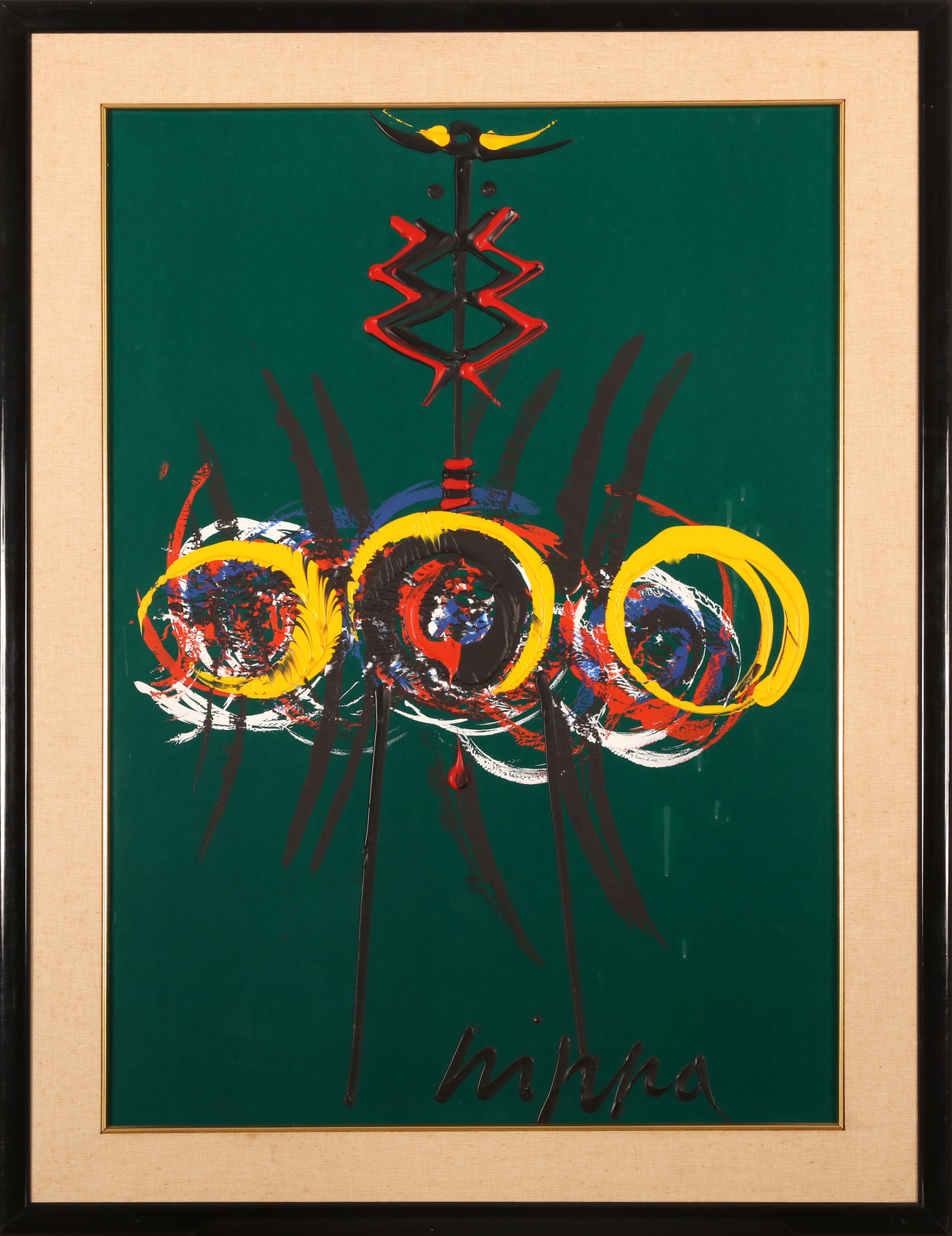 CRIPPA ROBERTO GAETANO (1921 - 1972) Totem. Acrilico su cartoncino. Cm 50,00 x 70,00. Firma in basso a destra. Autentica su fotografia di Roberto Crippa Jr. Provenienza: Galleria Pace, Milano. Cornice presente