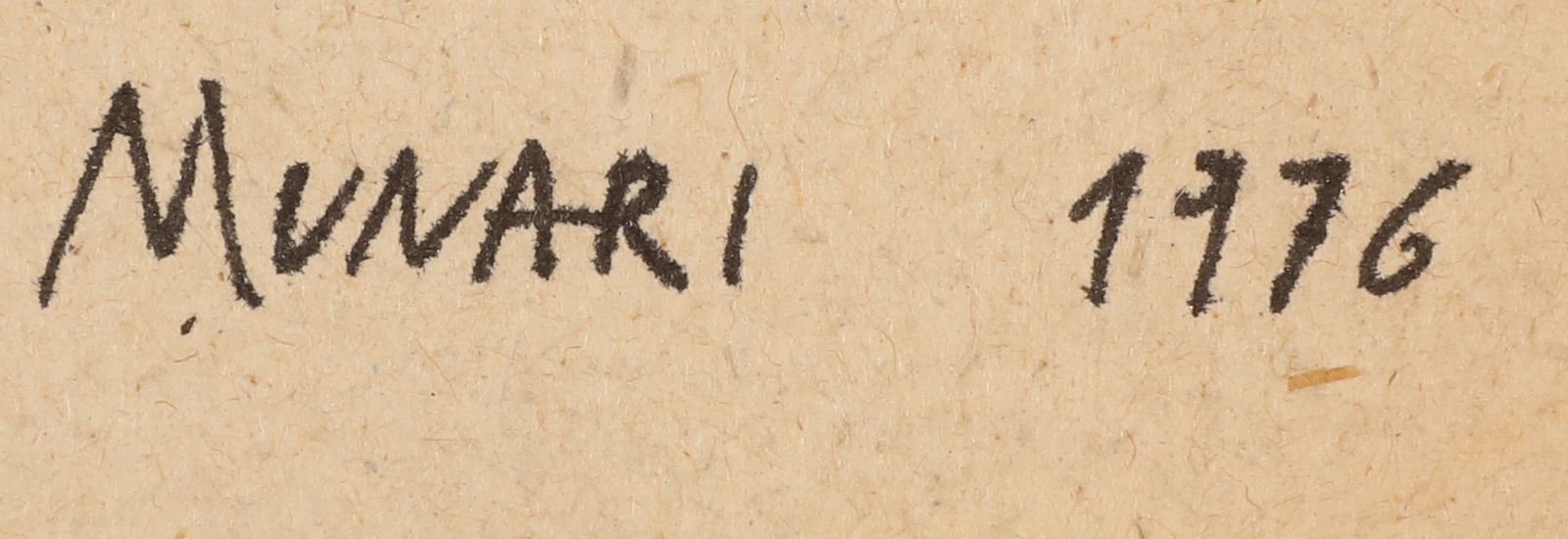 MUNARI BRUNO (1907 - 1998) Theoretical reconstruction of an imaginary object. 1976. Collage on paper. Cm 40,00 x 34,00. Title, signature and year lower right. Cornice presente