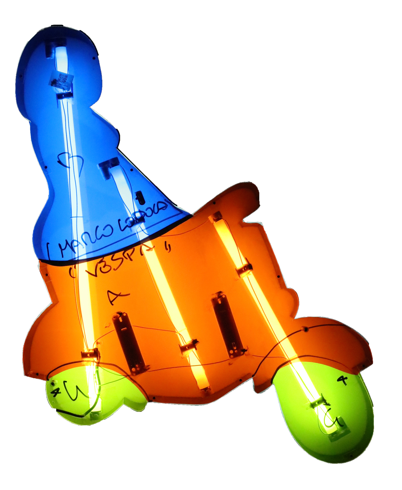 LODOLA MARCO (n. 1955) Vespa. light installation. Cm 82,00 x 85,00 x 12,00. At the back signature and title. Artist's authenticity certificate on photo.