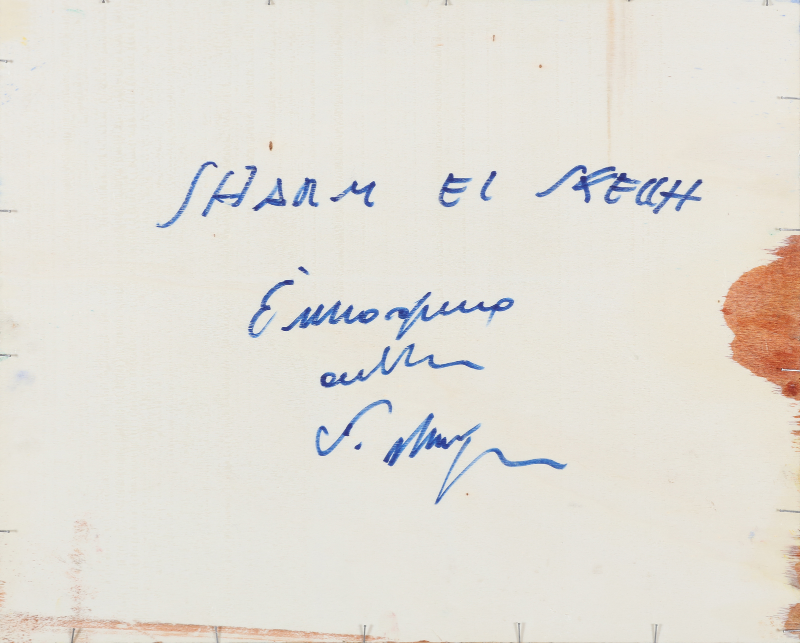 MAGAZZINI SALVATORE (n. 1955) Sharm el sheik. Oil on board. Cm 50,00 x 40,00. Signature lower right. At the back title and signature. Artist's authenticity certificate on photo. Cornice presente