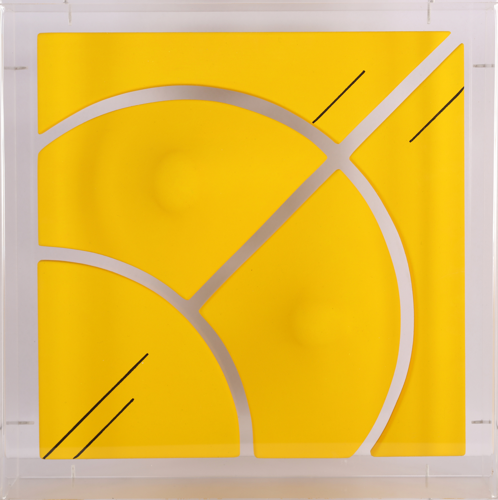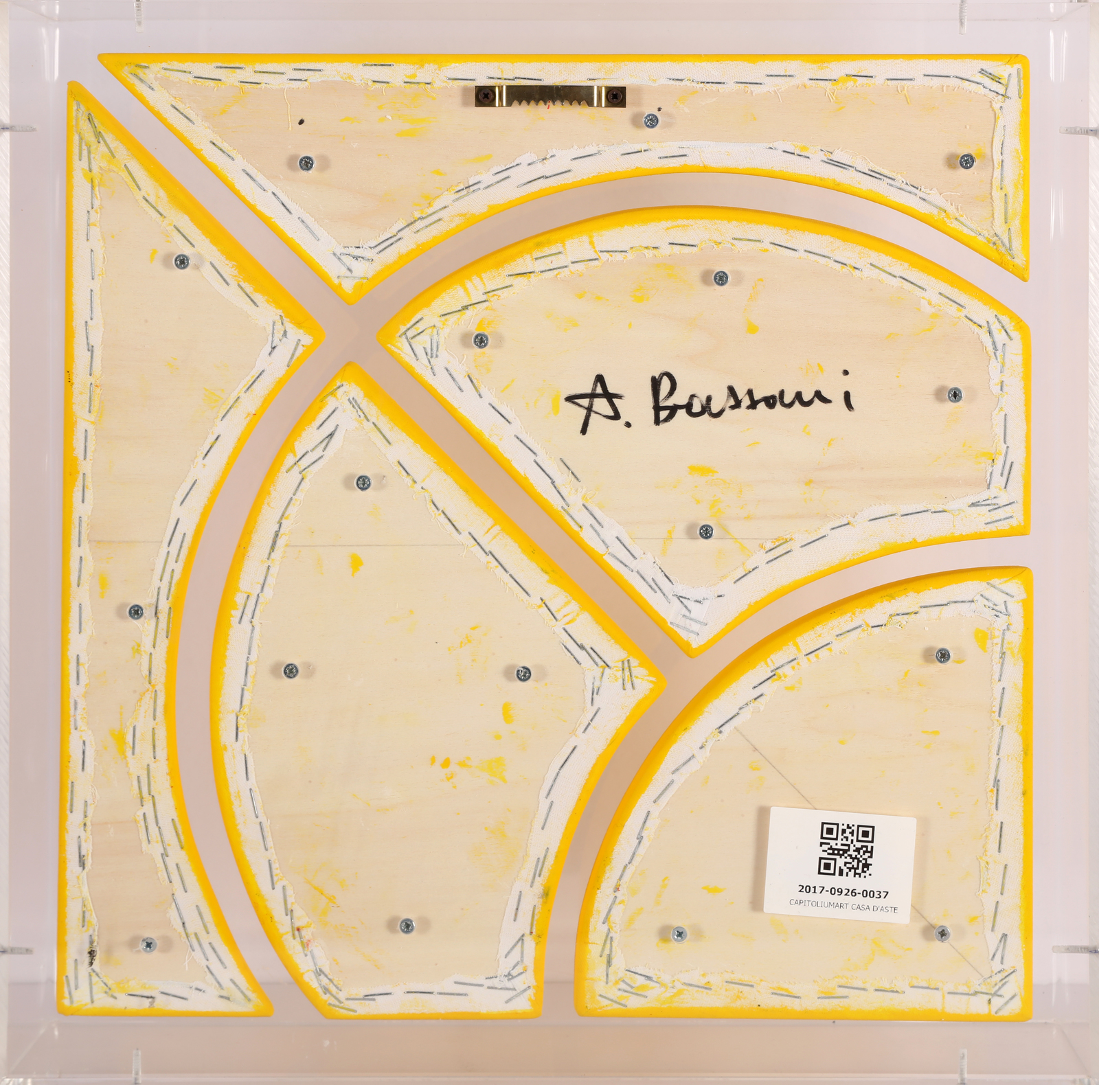 BASSANI ANDREA (n. 1954) Untitled. Acrylic on extroflexed canvas. Cm 40,00 x 40,00. Signature at the back. Artist's authenticity certificate on photo. Within plexiglass case.. Cornice presente