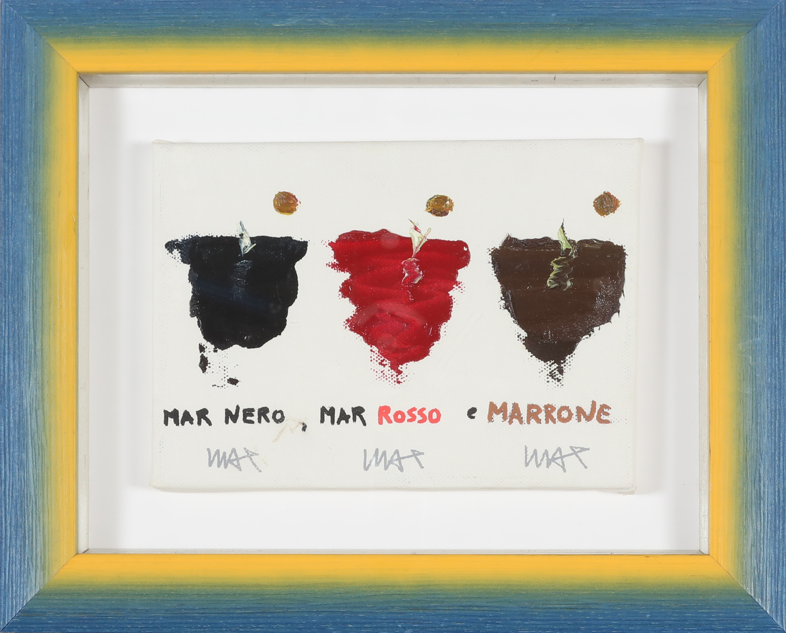 ODDONE MASSIMILIANO (n. 1974) Artistic bonbonniere. Mixed media on canvas. Cm 20,00 x 15,00. Signature lower. At the back title, signature and year. Artist's authenticity certificate. 2016-2017. Cornice presente
