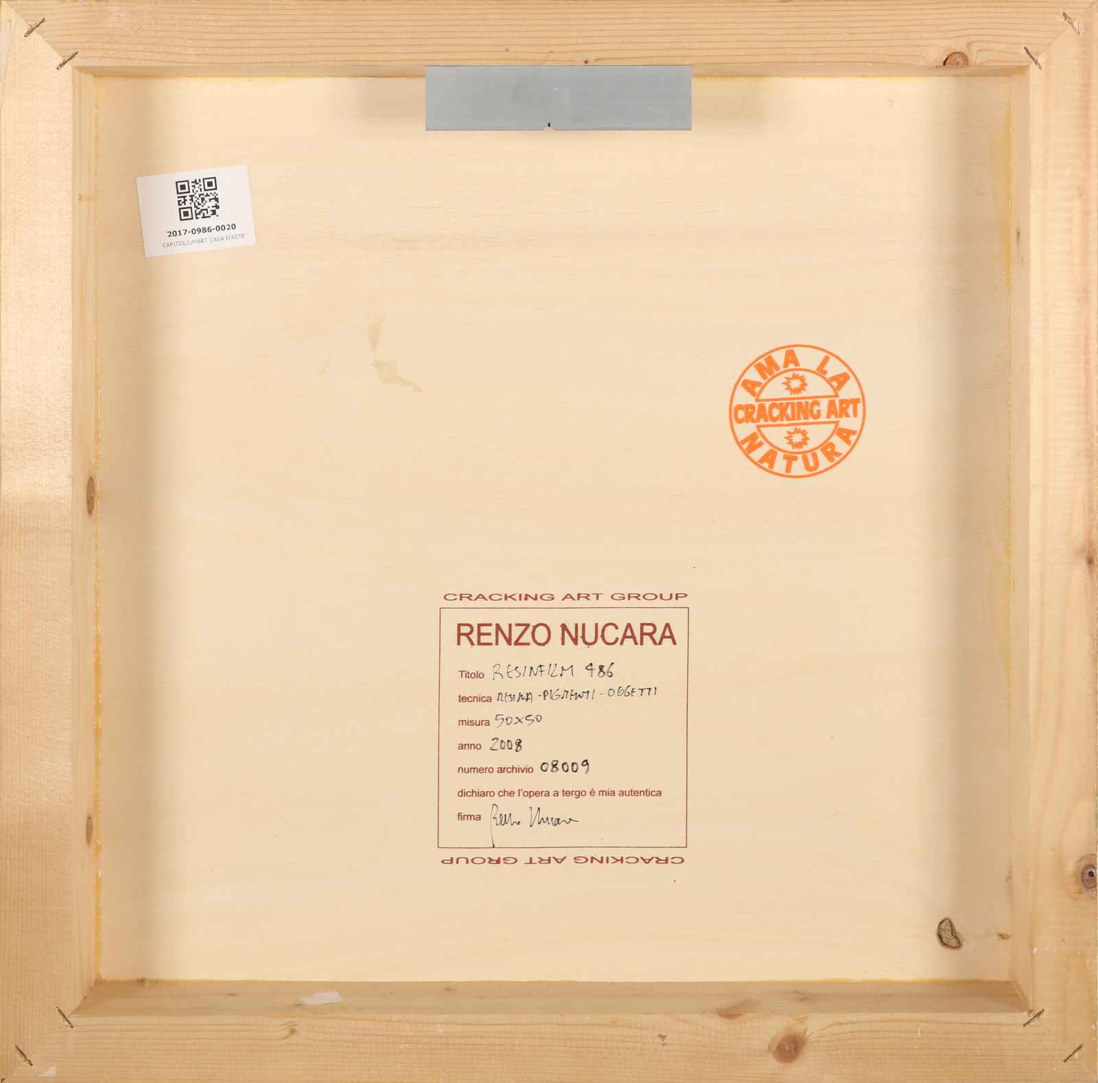 NUCARA RENZO (n. 1955) Resinfilm 486. 2008. Mixed nomes on board. Cm 50,00 x 50,00. At the back Renzo Nucara - Cracking Art Group stamp with artist's signature. Artist's authenticity certificate on photo.