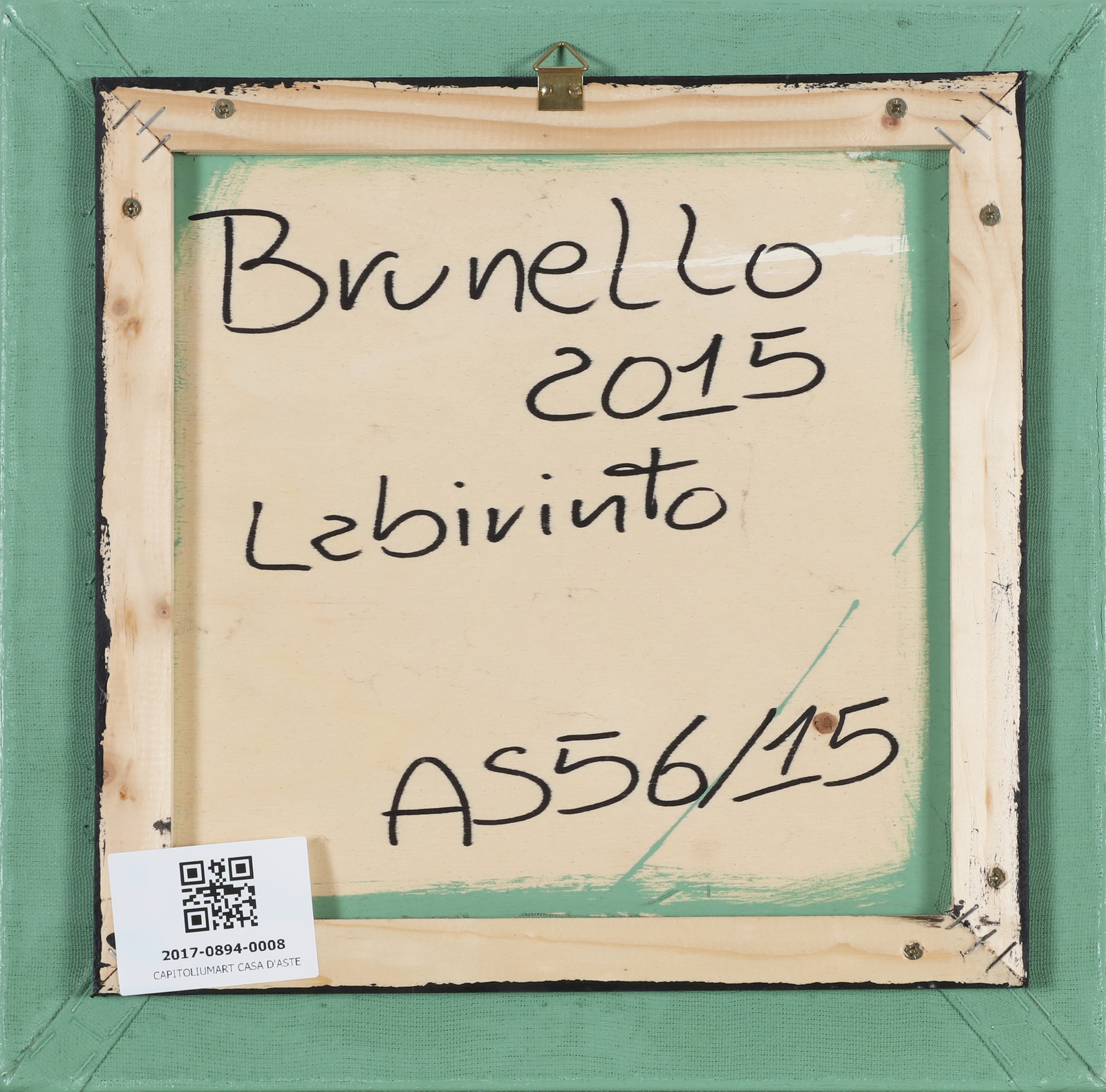 BRUNELLO STEFANO (n. 1960) Labirinto. 2015. Acrilico su tela estroflessa. Cm 30,00 x 30,00. Al retro titolo, firma e anno. Autentica dell'artista su fotografia. Presenti lievi difetti.