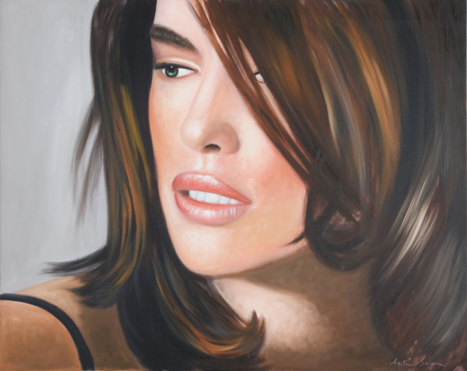 SCIACCA ANTONIO (n. 1957) Feminine face. Oil on canvas . Cm 100,00 x 80,00. Signature lower right. At the back title and signature. Artist's authenticity certificate on photo.