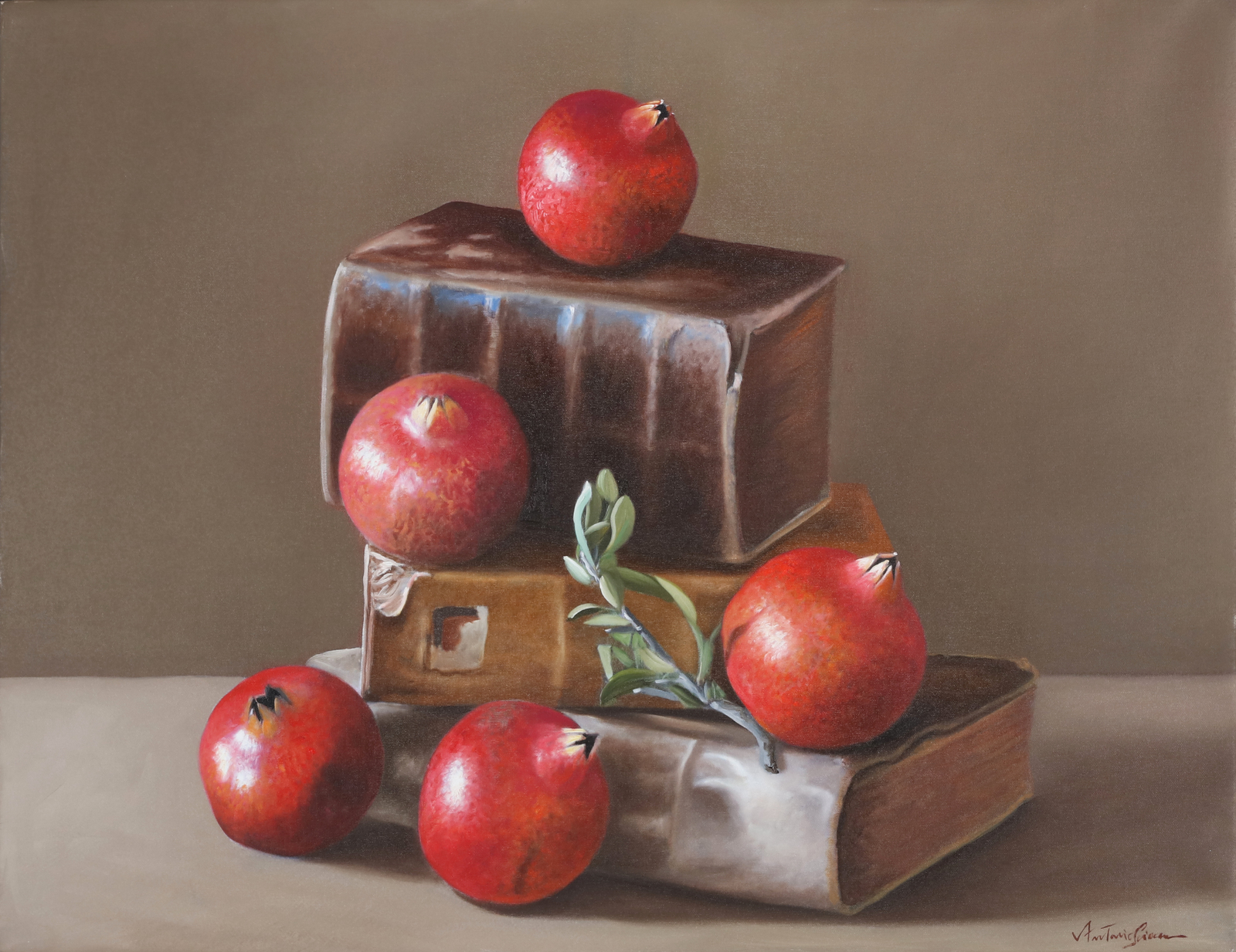 SCIACCA ANTONIO (n. 1957) Composition with pomegranate. Oil on canvas . Cm 90,00 x 70,00. Signature lower right. At the back title and signature. Artist's authenticity certificate on photo.