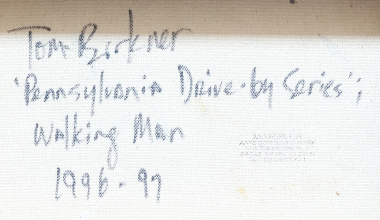 BIRKNER TOM (n. 1966) Walking man. Mixed media on canvas. Cm 40,50 x 28,50. At the back signature, title and year. 1996 - 99. Marella Art, Sarnico stamp. Cornice presente