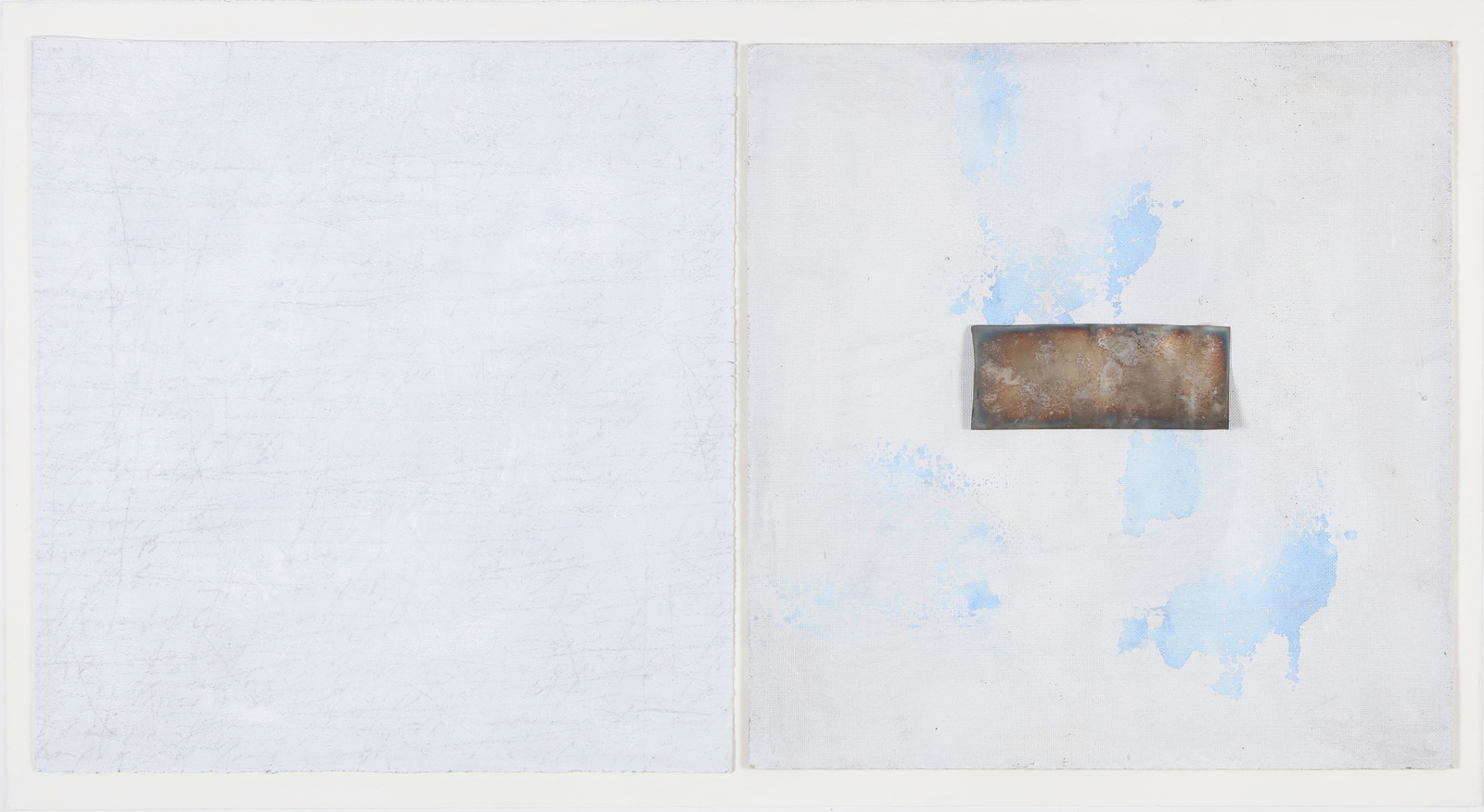 RAPETTI ALFREDO (n. 1961) Untitled. Mixed media and collage on Masonite. Cm 103,00 x 54,00. Artst's authenticity certificate on photo. Within plexiglass case. Cornice presente