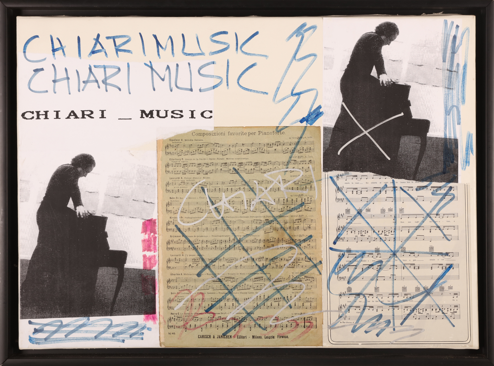 CHIARI GIUSEPPE (1926 - 2007) Chiari Music. Tecnica mista su tela. Cm 70,00 x 50,00. Autentica dell'artista su fotografia. Cornice presente