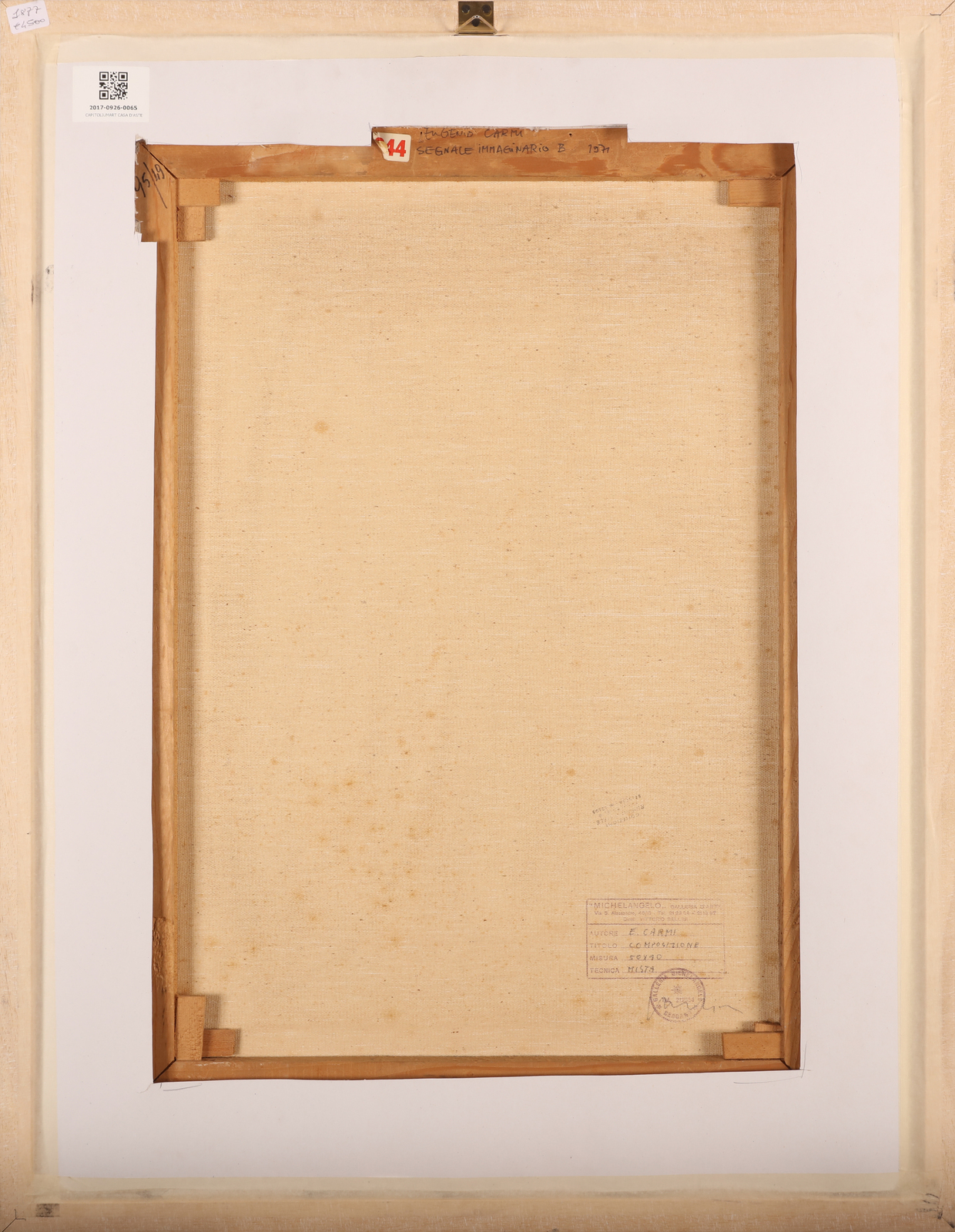CARMI EUGENIO (n. 1920) Segnale immaginario n. 2. 1971. Tecnica mista su tela. Cm 50,00 x 70,00. Al retro titolo, firma, anno e timbro Galleria d'Arte Michelangelo, Bergamo. Certificato di provenienza Allegrini Arte Contemporanea. Cornice presente