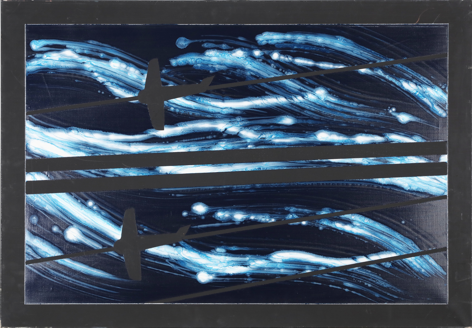 ANGELI FRANCO (1935 - 1988) Turbulence. 1986. Enamel on canvas. Cm 100,00 x 70,00. Signature and title at the back. Angiolino Calestani - Contemporary Art, Milan authenticity certificate on photo. Meeting Art Auction House authenticity certificate. Provenance: Quadreria, Milan. Franco Angeli Archive's authenticity certificate on photo.. Cornice presente