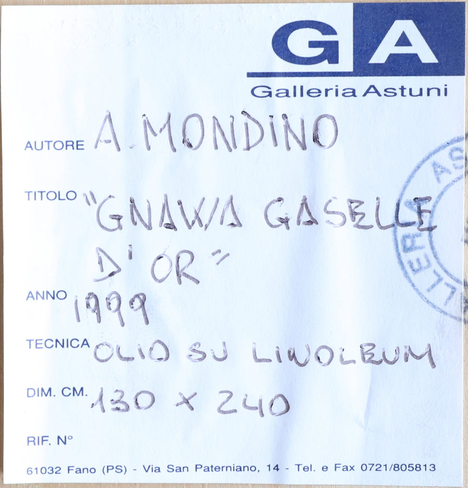 MONDINO ALDO (1938 - 2005) Gnawa - Gazelle d'or. 1999. Olio su linoleum. Cm...