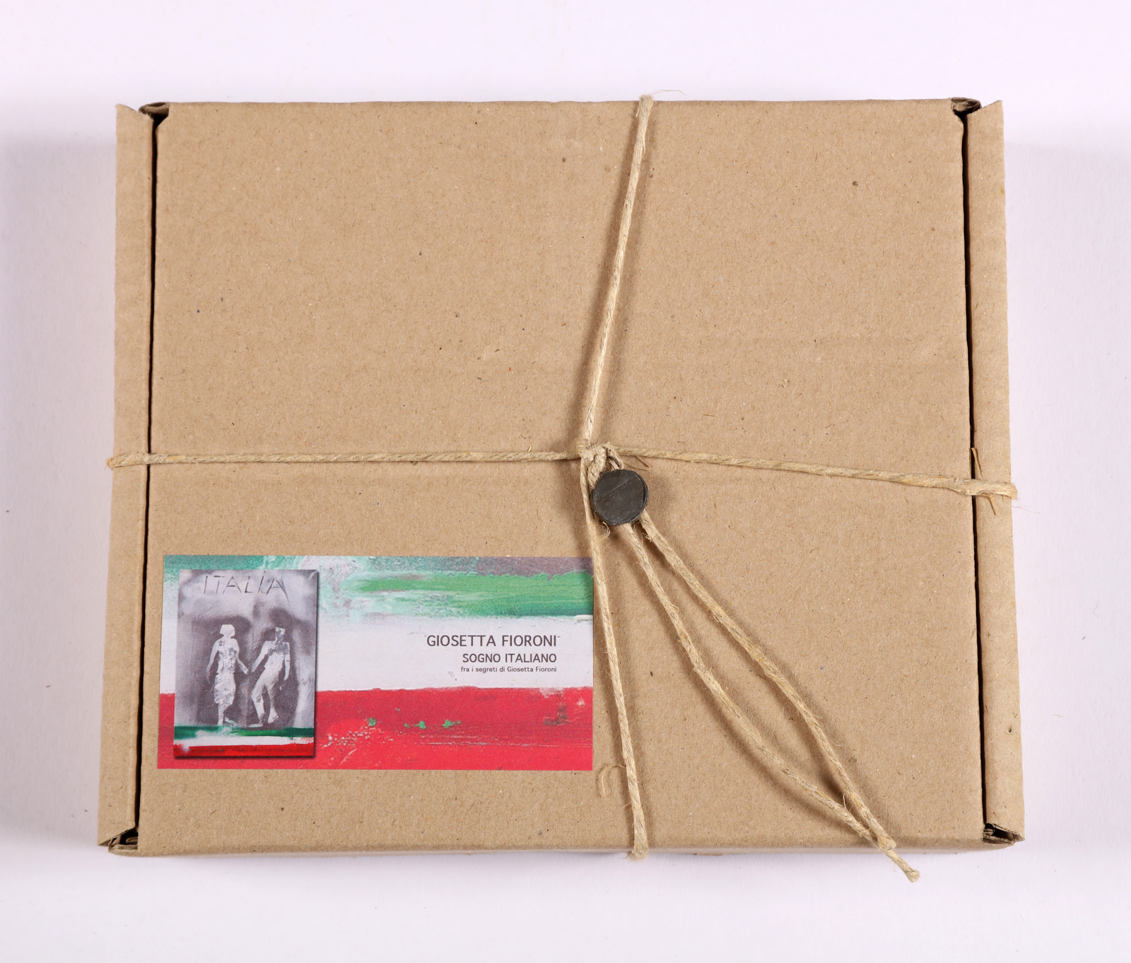 FIORONI GIOSETTA (n. 1932) Sogno italiano fra i segreti di Giosetta Fioroni. Scatola chiusa e sigillata. Cm 21,00 x 17,50 x 3,00. Timbro Spazio Contemporanea, Moncalvo ( AT).