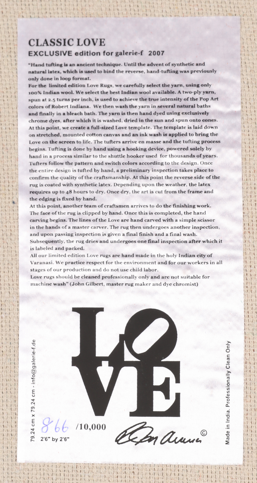 INDIANA ROBERT (n. 1928) Classic Love. Tappeto. Cm 80,00 x 80,00. 866/10000....