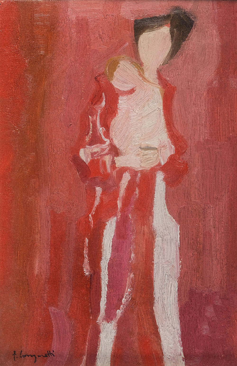 TRENTO LONGARETTI 1916 - 2017 Madre in rosso Olio su tela, cm. 30 x 20 Firmato in basso a sinistra Timbro D’Ars, Milano sul retro Prov. Collezione Fondazione D’Ars Oscar Signorini Onlus, Milano