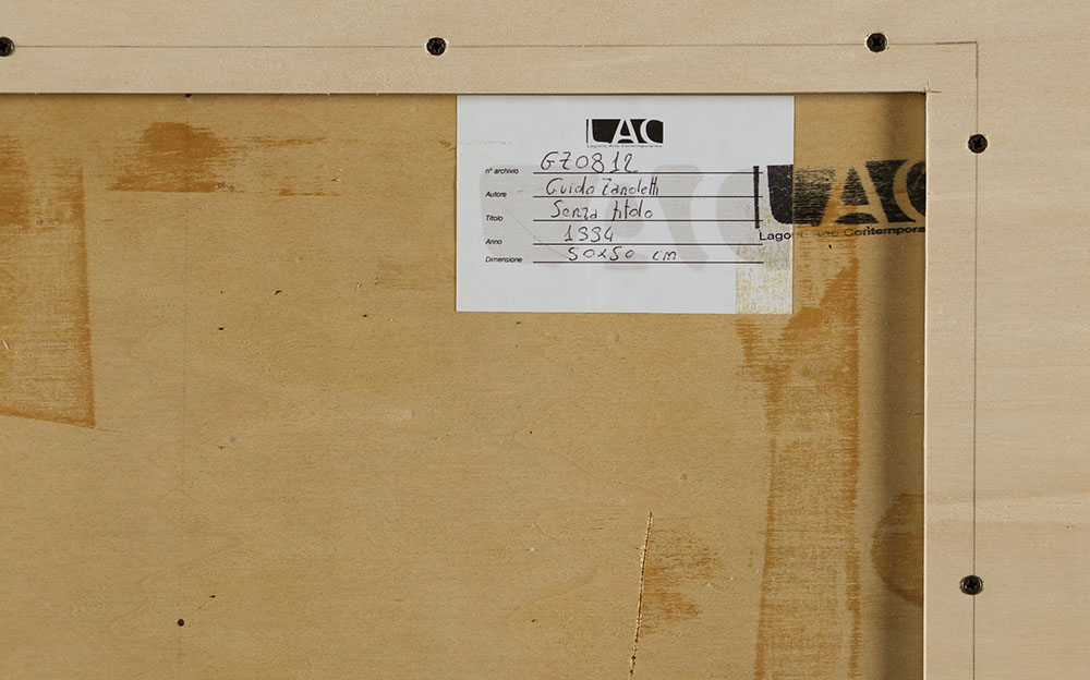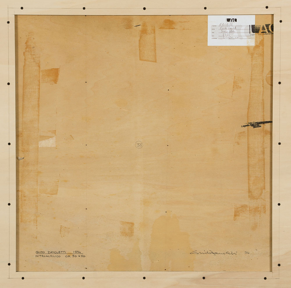 GUIDO ZANOLETTI 1933 - 2014 Senza titolo, 1994 Nitroacrilico su tavola, cm. 50 x 50 x 1 Firmato e datato sul retro Etichetta e timbro Lagorio Arte Contemporanea, Brescia sul retro Prov. Collezione Privata