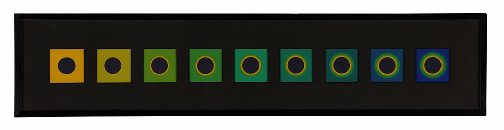 HORACIO GARCIA ROSSI 1929 - 2012 Addizione cromatica, 1979 Tempera su cartoncini, cm. 14 x 70 (cm. 5 x 5 cad.) Firmato e datato Prov. Collezione Privata