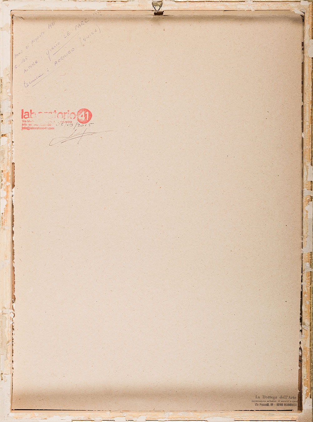 JULIO LE PARC 1928 Theme 22 a variation Acrilico su carta, cm. 55 x 40 Firmato in basso a destra Timbro laboratorio 41, Macerata sul retro Prov. Collezione Privata