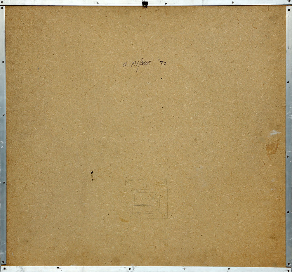 CARLO ALFANO 1932 - 1990 Senza titolo, 1970 Tecnica mista e intarsio su tavola, cm. 65 x 70 Firmato e datato sul retro Flavia Alfano ha confermato l’autenticità dell’opera L’archivio Alfano archivierà l’opera a nome del futuro proprietario Prov. Collezione Privata