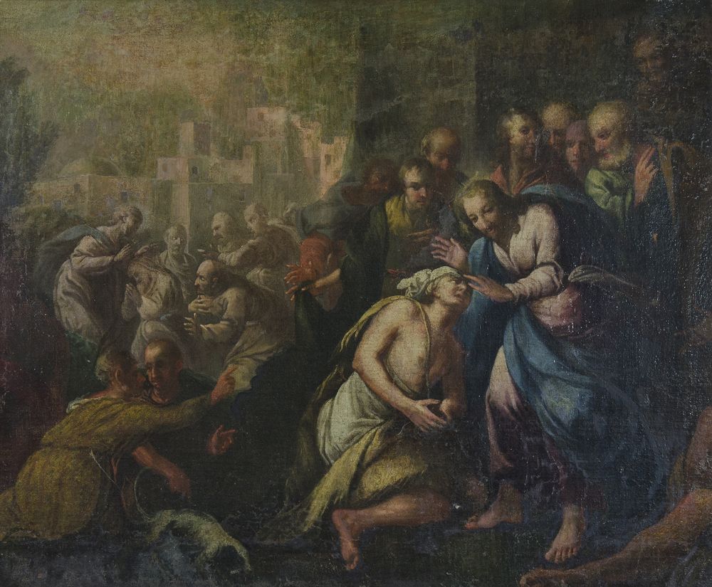 Maestro veneto del XVII secolo "Gesù guarisce il cieco" cm. 72x88 - olio su tela foderata