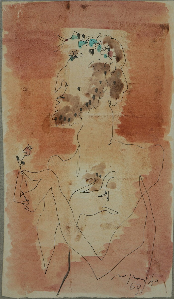 ROGNONI FRANCO (1913 - 1999) Senza titolo. 1969 Tecnica mista su carta, cm 26x44. Autentica su fotografia a cura di Mariuccia Rognoni Noè. Firma e anno in basso a destra.