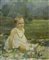Alessandro Milesi Venezia 1856-1945 "Silvia Bocini nel prato" cm. 87x70 - olio su tela Firmato b. a d. e datato 1930. Prov.: Collezione Silvia Ciardi, Villa Baciocchi Villa Vicentina.