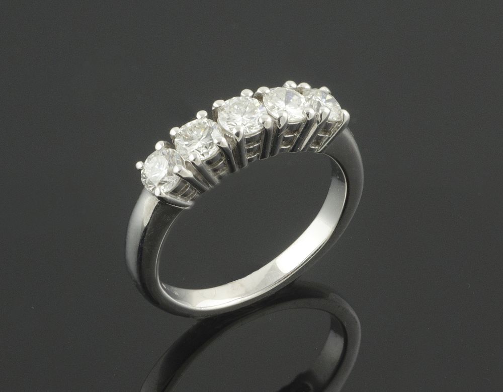 Lot 111 | Anello fedina in oro bianco con 5 diamanti taglio brillante , Purezza IF...