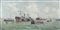 Peter Johannes Wagemans 1879-1955 "Traffico di barche in mare" cm. 43x80 -...