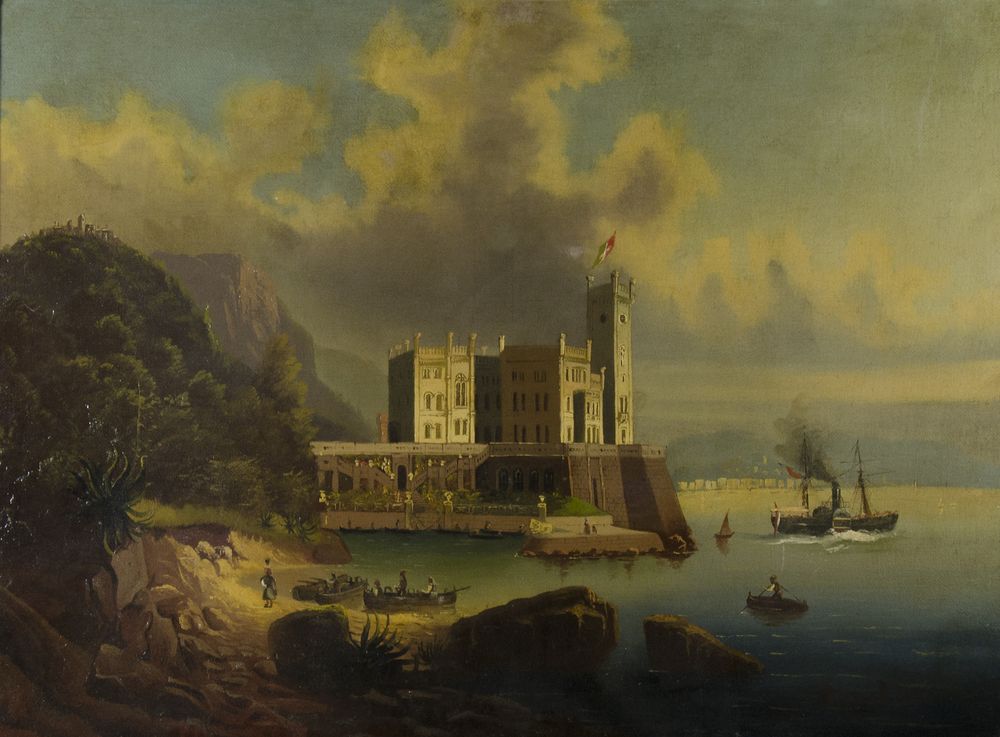 Scuola austriaca II metà XIX secolo "Trieste, il Castello di Mramare" cm. 74x100 - olio su tela foderata